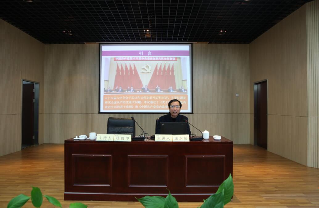 隨後,常州市委黨校理論研究中心主任康永(yǒng)超教授應邀為全體黨員和(hé)領導(dǎo)幹部作了《開啟全麵從嚴(yán)治黨新征程》的(de)宣講,他通過對“六中全會的總體(tǐ)定(dìng)位與鮮明特點”、“全會對習近(jìn)平核心地位的明確”、“《準則》和《條例》的基本要求”這三個(gè)問題的解讀,幫(bāng)助黨員和領導(dǎo)幹部進一步理解全麵從嚴治黨的重要性和必要性,理解《關於新形勢下黨內政治生活的若幹準則》和《中國共(gòng)產(chǎn)黨黨內監督條例》的基本要求(qiú)。
