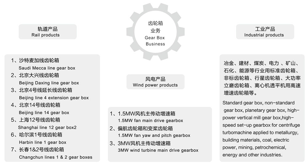 冶金(jīn)、建材、煤炭、電力、礦山、石化、能源等行業用標準齒輪箱、非標準(zhǔn)齒輪箱、行星齒輪箱、大功率立磨齒(chǐ)輪箱、離心機透平機用高速增速(sù)齒輪箱等。